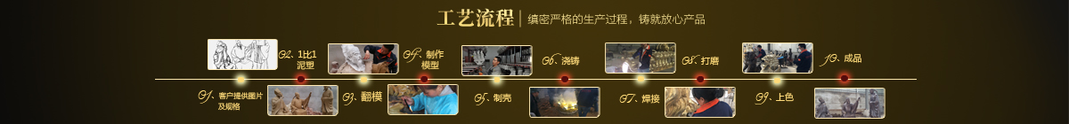 制作一件完美的鑄銅雕塑,最重要的步驟就是制作泥塑模型,然后再用工業(yè)硅膠拓印、翻模。所以泥塑的姿態(tài)、神情生動與否直接影響最終銅雕塑的品質(zhì)。所以我廠一直對泥塑模型的制作格外重視。我廠以雕塑為本,以藝術(shù)為根,挾中華文化之傳統(tǒng),偕歐陸藝術(shù)之風(fēng)韻,風(fēng)格獨特,盡顯淋漓盡致。我們本著大膽創(chuàng)新、勇于突破的精神,以追求卓越為導(dǎo)向,堅持寧缺勿濫為原則,并可依照您提供的要求,為您量身設(shè)計制作。我廠人才濟濟,有智慧嚴(yán)謹(jǐn)?shù)墓芾戆嘧樱姸嗄贻p充滿激情、充滿創(chuàng)意的專業(yè)設(shè)計團隊、有專業(yè)技術(shù)精湛的雕塑制作人才和專業(yè)的施工隊伍。他們不僅具深厚的文化藝術(shù)底蘊,更汲取當(dāng)代雕塑精華,博采眾家之長,作品既有嚴(yán)肅莊重寫實題材,也有輕松前衛(wèi)的抽象題材,表現(xiàn)手法上浪漫主義中不乏樸實,現(xiàn)實主義中蘊涵著激情,設(shè)計理念貫穿古今、融匯中西,深刻詮釋著藝術(shù)的精髓,把古典主義和后現(xiàn)代主義完美的融合,將雕塑藝術(shù)演繹為力的凝聚、美的體現(xiàn),讓人們感受到的不僅是一種藝術(shù)的浪漫與優(yōu)雅、粗獷與悲壯、更是豐富的優(yōu)秀藝術(shù)寶藏和文化傳統(tǒng),讓您在藝術(shù)與文化中穿流,在時空中飄蕩,使靈魂在藝術(shù)的海洋洗禮。 MORE+